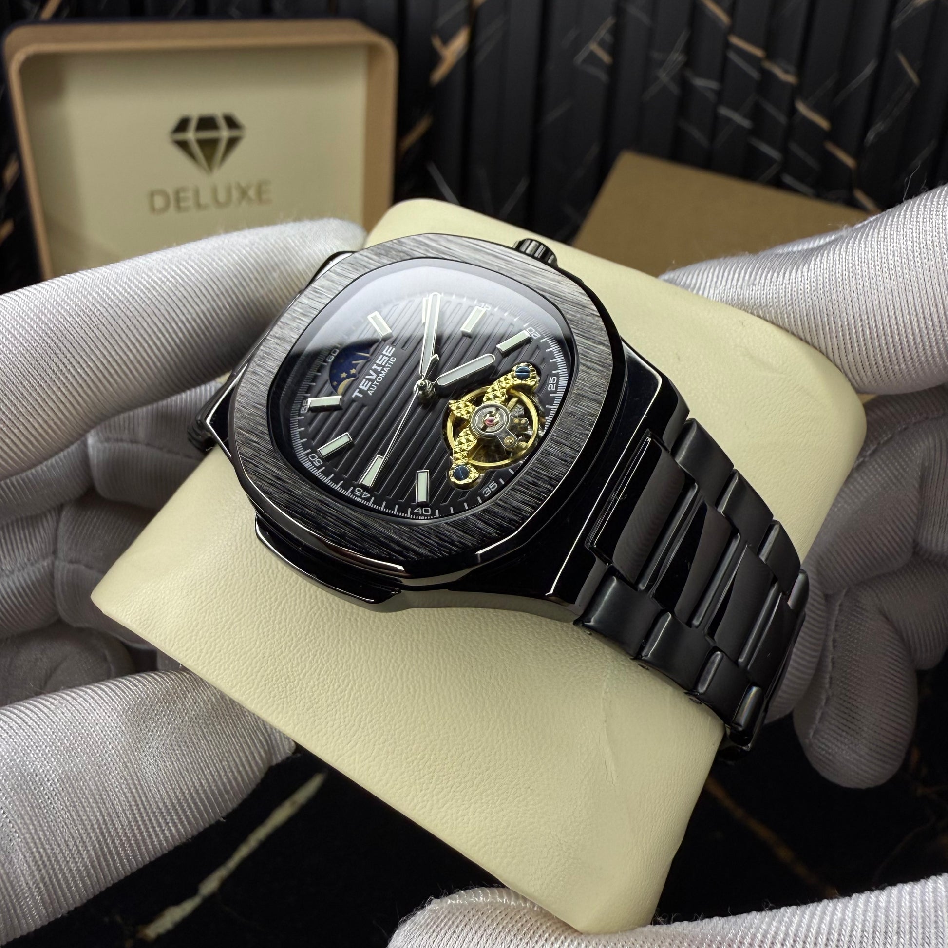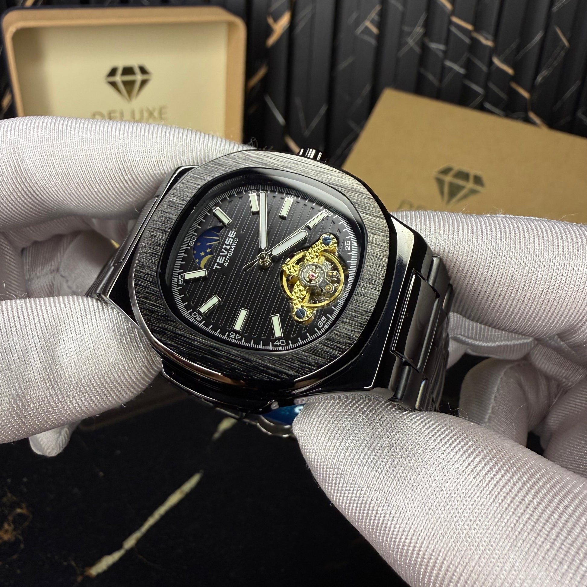 This automatic timepiece blends bold design with refined mechanical beauty.