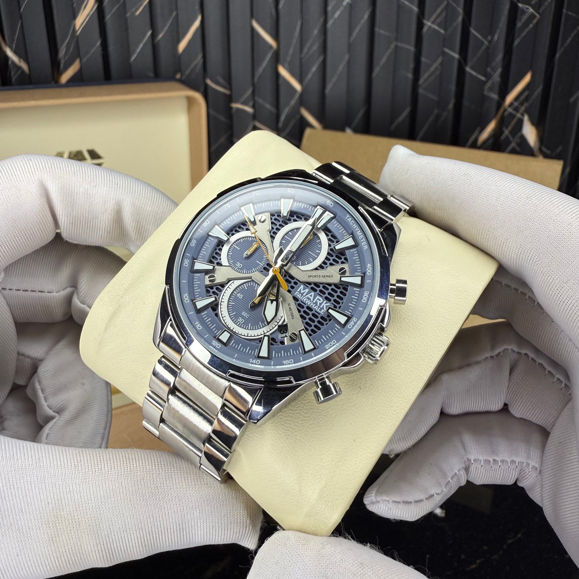 β’ Sub-Dials: Functional chronograph with 24-hour, seconds & minute counters